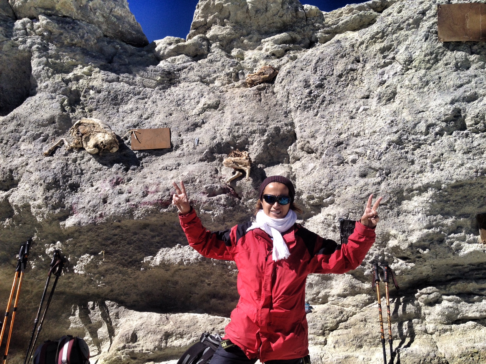 Gün doğumuna kadar yürüyüş gayet güzel geçti, her adım atışlarımızda maşallah diye sesleniyorlardı. 5000 metreye gelince -bedenimi yüksekliğe alıştırmadığımdan- yüksek istifadan etkilenmeye başlamıştım ve adımlarım yavaşlamaya başladı. İstesem de hızlanamıyordum. Birlikte çıktığımız grup 5.000 metreye yakın bir yükseklikte düzlük bir yer bulunca burada biraz uyuyup öyle yola devam edeceklerini söylediler. Biz vakit kaybetmemek için yola devam ettik. Mola için durduğumuzda daha önce İstanbul´da yaşamış Hasan ile karşılaştık. Kendisi bizden iki saat sonra çıkmasına rağmen bizi yakalamıştı. Benim yorgun ve bitkin halimi görünce bana ananas suyu ile yiyecek bir şeyler verdi. Canım hiç istemese de yemek için kendimi zorladım. Hasan arada bir koşuyor sonra durup bizi bekliyordu. Hayatları yüksek irtifada geçen bu insanların bedenleri nasıl bir gelişim göstermiş, insan bu durumu kıskanıyor.