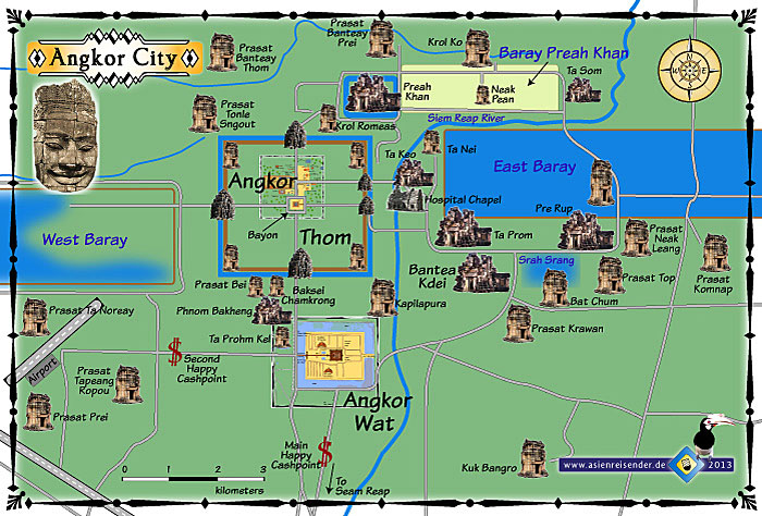 Angkor Wat, Siem Reap şehrinin kuzeyinde, ormanlar arasına gizlenmiş, Angkor Medeniyetinin izlerini taşıyan ve pek çok da tapınağın bulunduğu bu şehir, dünyanın en büyük tapınaklarından biri olma unvanını arada geçen o kadar yıl olmasına rağmen hala korumuştur. Angkor, 1992 yılında UNESCO Dünya Mirası Listesine alınmış.