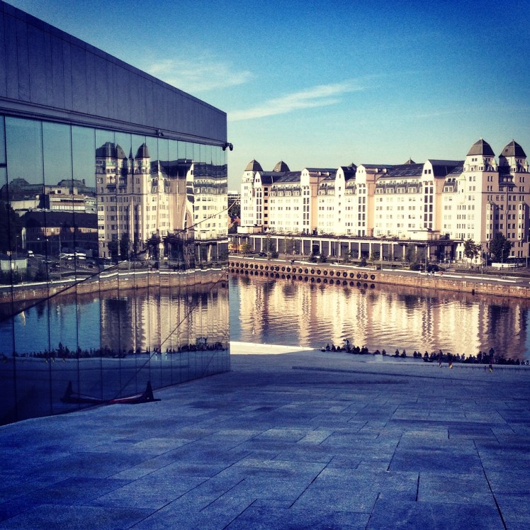 - Sırtınız tren istasyonuna verip solunuza doğru giderseniz bu sefer de, Mimar Snohetta tarafından 2007 yılında tamamlanan Oslo Opera Binasını görebilirsiniz. Hava güzelse- ki ben ordayken hava çok sıcaktı-, gün batımında Oslo Opera Binasına gidip güzel fotoğraflar ve yansıma fotoğrafları çekebilirsiniz.