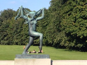 - Vigeland park; adını heykeltıraş Gustav Vigeland´dan alan bu park çıplak heykeller parkı. 212 adet çıplak heykel olduğu yazılı kitaplarda ama içeri girince daha çok varmış gibi geliyor insana. Gustav Vigeland, Oslo belediyesi ile bir anlaşma yapar ve buna göre yaşamı boyunca maddi destek görecektir, evinin bulunduğu arazi kendisine verilecektir. Karşılığında ise tüm heykellerini Oslo şehri için yapacaktır. Yaptığı tüm heykeller bu parkta sergilenmektedir. Maalesef bu parkın tamamlandığını kendisi göremeden vefat etmiş. Oslo’ya gelen her turistin uğradığı bu parkı, -hava güzel