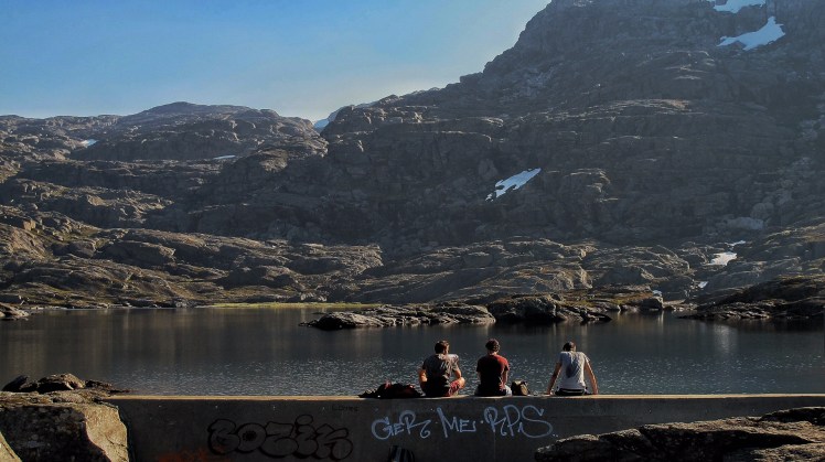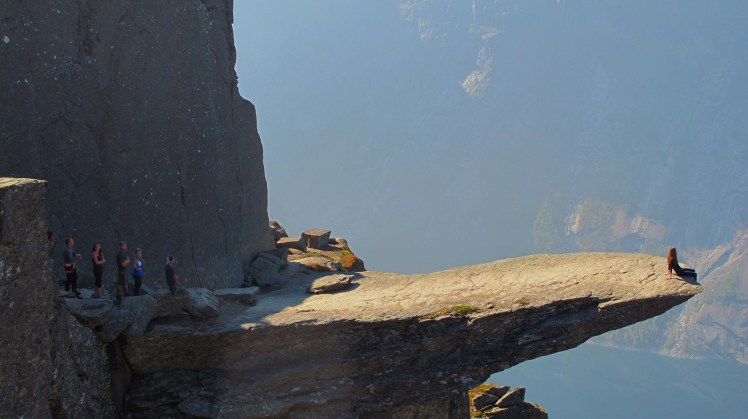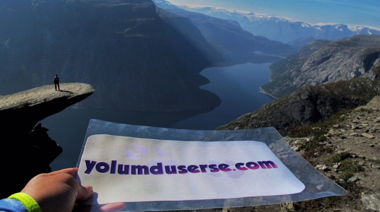 10.000 yıl önce buzulun erimesi sonucu oluşan Ringedalsvatnet gölü, kendini göstermeye başladığında, maviliğiyle bizi büyüledi. 5 saat sonunda güneşin vurmasıyla kayalaşan ve dilini gösteren Troll karşımızdaydı. Gölden 700 mt yükseklikte aşağısı uçurum, burada fotoğraf çektirmek için sıraya girmek gerekiyor. Sırayla, bak ben senin için geldim diyip dilin üzerine çıkıp fotoğraflar çektiriyorduk. Buraya gelmek için o kadar çok uzun zaman önce plan yapmaya başladım ki üzerinde 5 dk durup foto çektirmek yerine uzunca oturmak isterdim ama öyle olmuyor. Havanın sıcak ve güneşli olması bizim için büyük bir şans buraya gelince öğle yemeği molamızı da burada verdik.