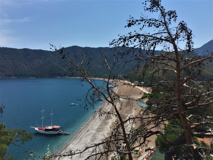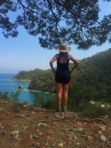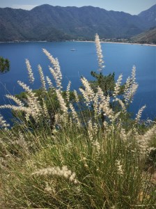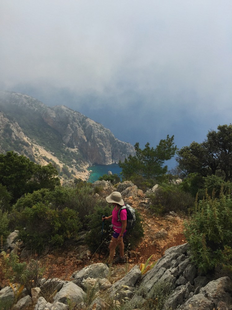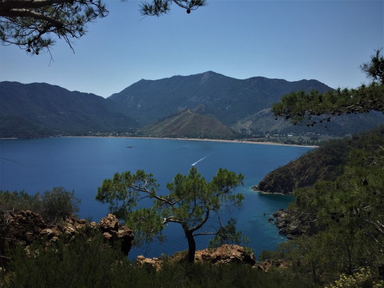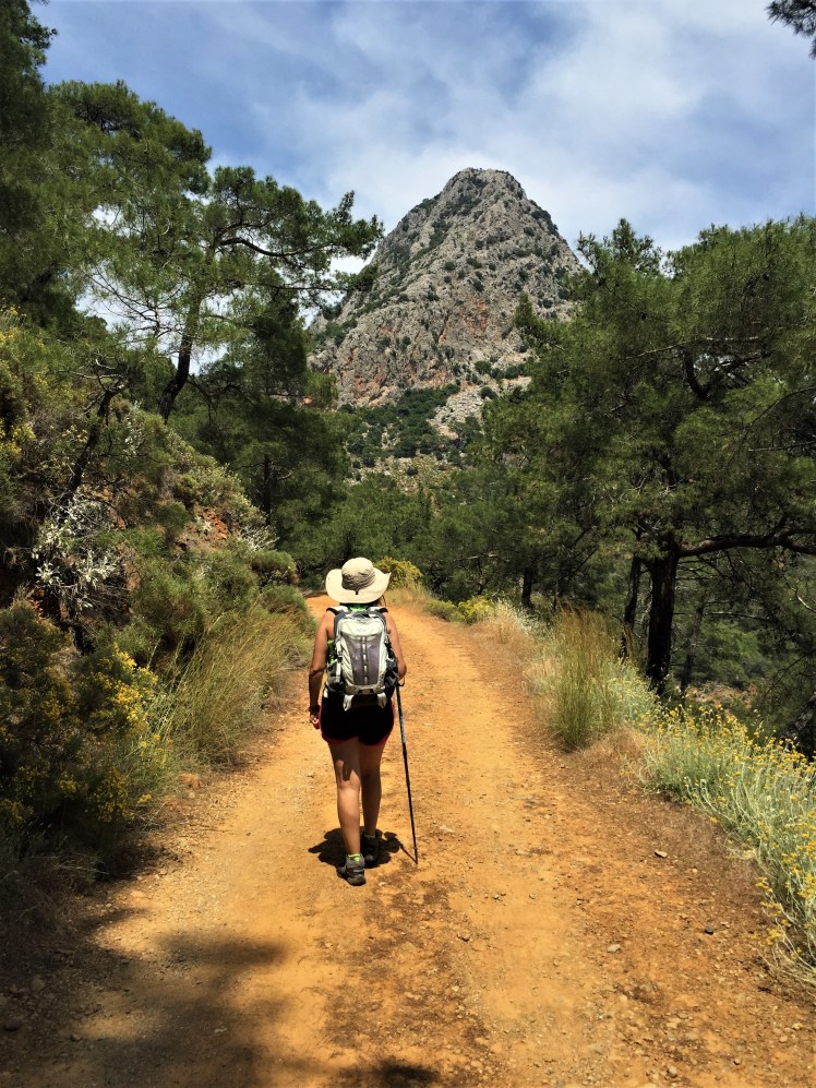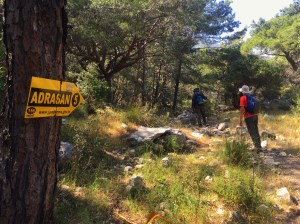 2 saat eğimli yoldan yukarı yürüdükten sonra, 2 saat da aşağı eğimli yolda yürüdük. Yolun sonunda çam ağaçlarını görünce denize yaklaşmıştık artık.
